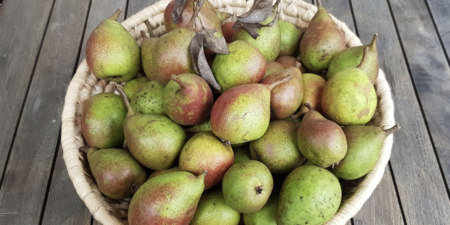 1 kg Birnen waschen, schälen, entkernen und kleinschneiden.