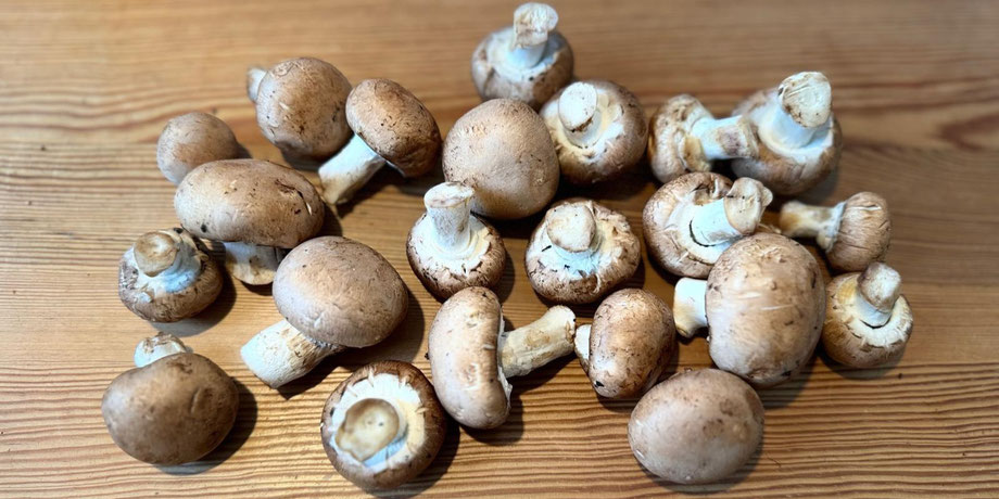 Pilzstiele von 10 Champignons abknicken und fein hacken.
