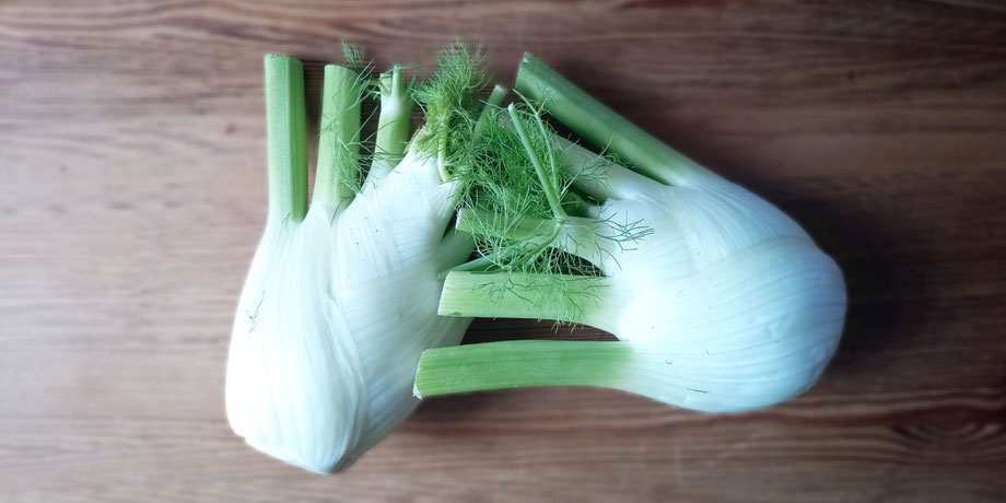 1 große oder 2 kleine Fenchelknolle(n) putzen und in breite Streifen schneiden, in