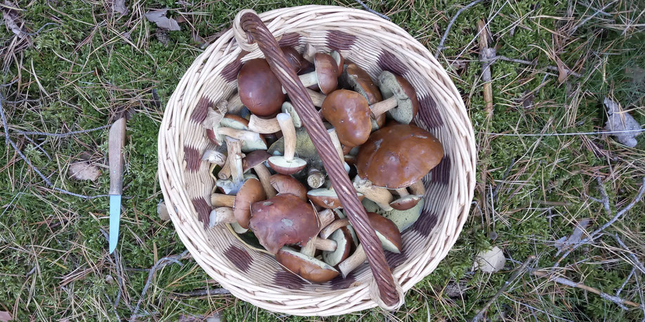Waldpilze putzen, wenn nötig den Schwamm entfernen und kleinschneiden.