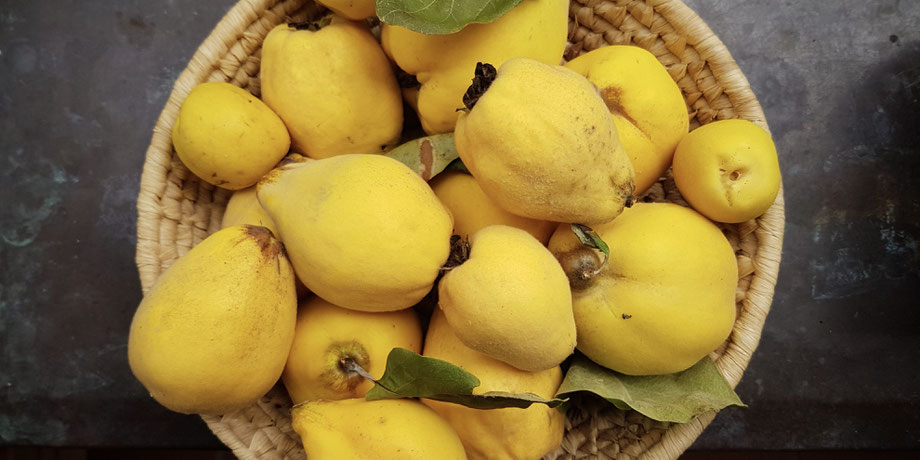 2 kg Quitten abreiben, entkernen, kleinschneiden und entweder im Dampfentsafter entsaften oder und über Nacht stehen lassen, damit sich Saft bilden kann. Quitten in ein über einen umgedrehten Hocker aufgehängtes Mulltuch geben und den Saft noch einmal über Nacht durchs Tuch tropfen lassen. Quitten anschließend im Tuch ausdrücken.