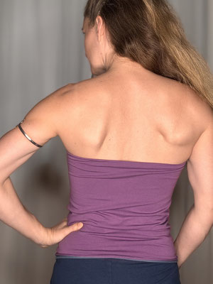 Das Top ist zweilagig und zweifarbig, also wendbar.