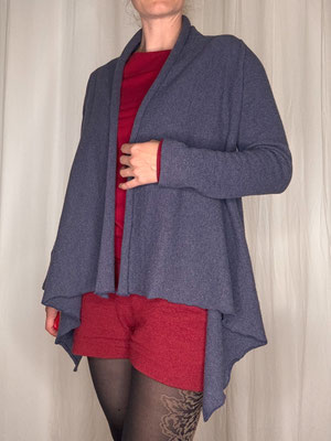 Diese Jacke ist eines der wenigen Teile, dem man sofort ansieht, dass es aus einem Viereck ist. Vielleicht hab ich mich darum so lange dagegen „gewehrt“, dieses Modell zu entwickeln. Es war mir einfach zu einfach. ;)